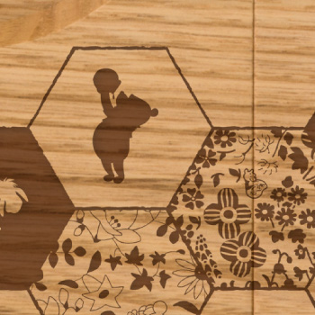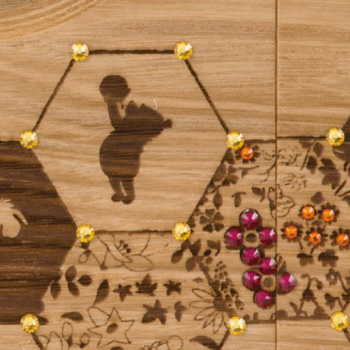 ~最短7営業日後発送~ ミツバチの巣の中には、プーさんの仲間や美しい花々、そして甘い蜜と未来への素敵な予感がたっぷり。 ほら、またミツバチが新しいハッピーを届けに来ましたよ。 くりの木言葉…「真心」「満足」 はっきりとした木目を持ち、素朴で優しい雰囲気の「くり」を使用。職人の手仕事で丹念に仕上げます。